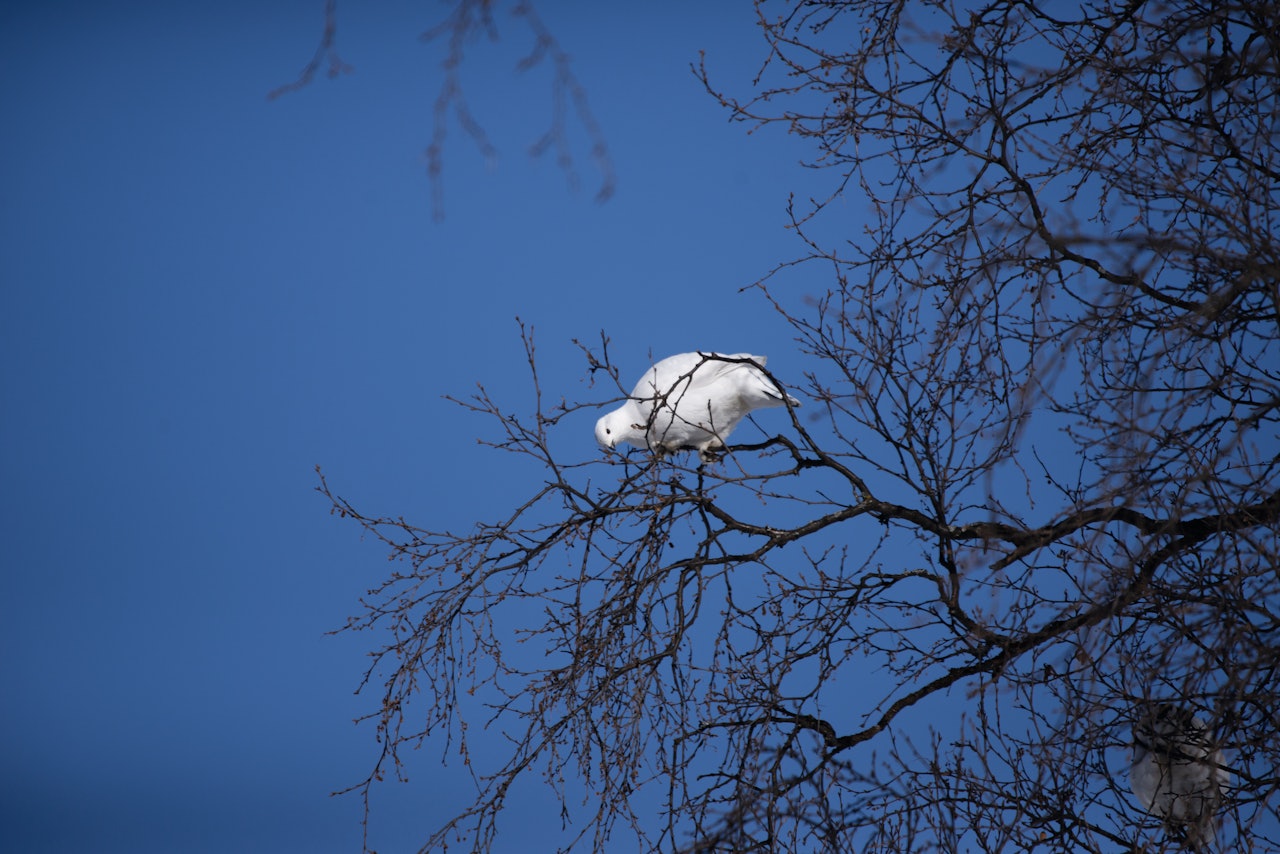 Da kan rypeflokker sitte som snøballer i bjørka. Her balanserer de ut på tynne kvister og strekker seg etter mat, tar et vingeslag eller to til neste kvist og beiter videre.