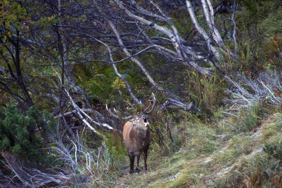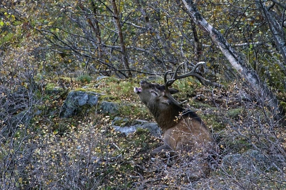 -Og når skal konserten være, spør jeg. – Høres ut som det er generalprøve i kveld, får jeg til svar. Da vet jeg at brølinga er i full gang og det er tid for en klatretur med kamera og telelinse i de ville fjellsidene. Igjen får jeg oppleve konserten, scenen er stor, kulissene enorme. Alt pyntet i de vakreste høstfarger. Og et kor av bass-stemmer runger over dalen!