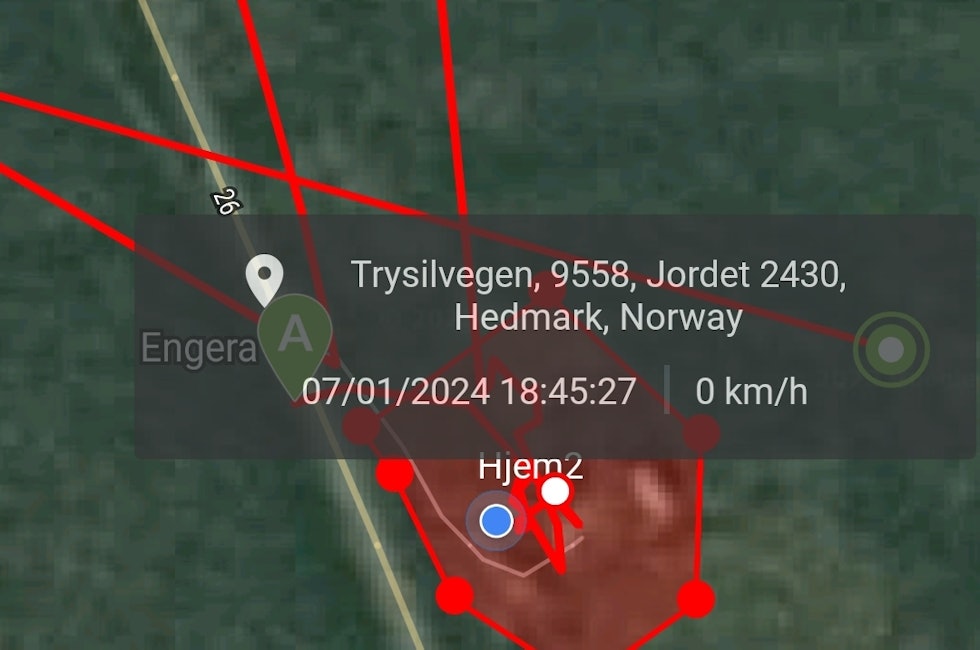 Dette er nok en smakssak, men jeg foretrekker at du enkelt kan trykke på hunde- eller menneskesymbol. Appen var enkel og oversiktlig, men skulle gjerne hatt hunde- og menneskesymbol i startvinduet, fremfor at vi må trykke flere ganger på skjermen for å skifte mellom hund og mobil. Når du trykker i menyen for å få opp hunden kommer et lite vindu med både adresse, batteritid i prosent, kilometer, høydemeter og antall meter hunden er vekk fra deg. Denne liker vi svært godt.