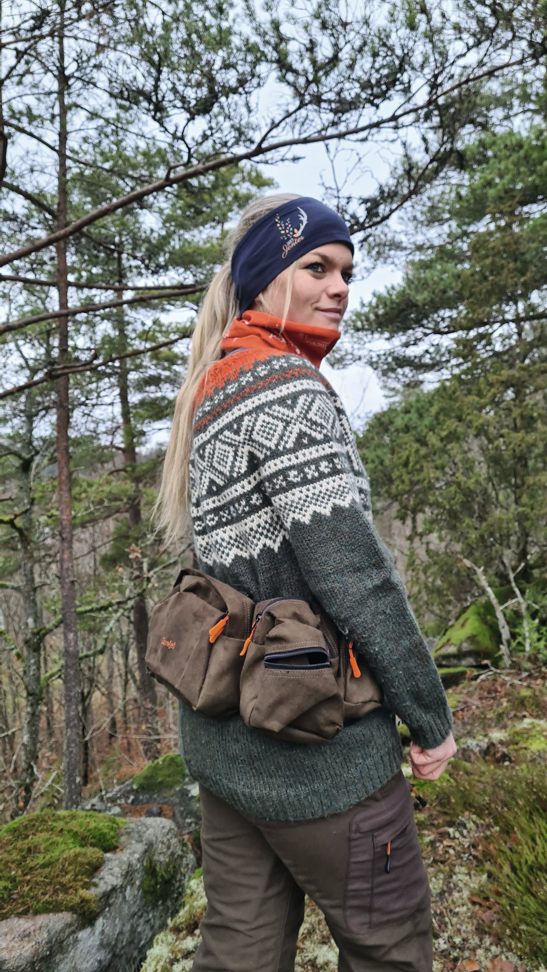 Hoftebeltet til Dovrefjell er utformet med mange rom/lommer, mot en bred ryggpolstring. Det er veldig likt beltet fra Swedteam, som vi også har testet. Forest hoftebelte har klikkspenne i front, med stramming på begge sider av spennen. Det største rommet sitter bak på ryggen. Volum er ikke oppgitt, men jeg anslår at det rommer ca 2,5 liter. Ved siden av på venstre side sitter det en lomme til vannflaske med snøring i toppen, og ved siden av der igjen en liten glidelåslomme. På høyre side av baklommen sitter først en dobbel lomme med to glidelåser, og til slutt en liten lomme med glidelås, tilsvarende den på venstre side.