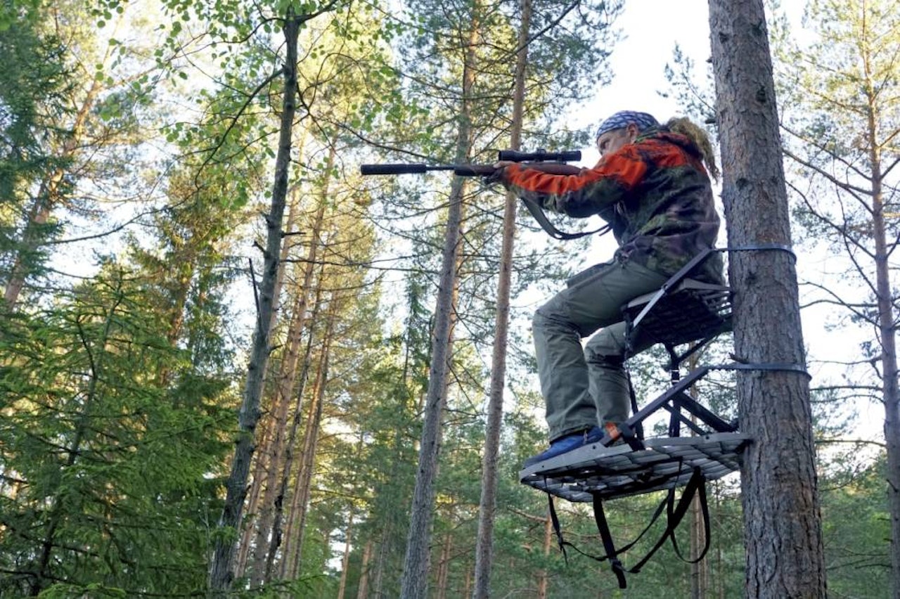 – Samtidig kommer det an på hvor høyt du skal. Du kommer vesentlig høyere enn med en vanlig jaktstige, gitt at treet er «riktig», sier Støvland.