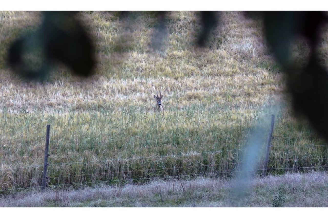 Jeg speider med kikkerten. Det er lite å se. Kornet er høyt, og det kan bli utfordrende å få en god skuddsjanse på en råbukk. Det har gått fire dager siden bukkejakten startet, men på grunn av en ferietur er dette min første jaktdag. Jeg blåser noen kontaktlyder til. Ingen svar. Lot bukken seg ikke lure?