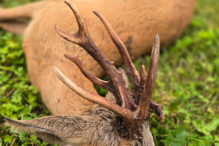 – Fikk skutt en flott returbukk på ettermiddagen dag to av jakta. Den hadde lange tynne horn og bare 5 tenner viste det seg, så det ble et flott uttak. Jeg gikk i skogen og hadde gått en ganske bra runde uten noen tegn til rådyr. Jeg flyttet meg til nytt område og denne kom momentant. Jeg lokket med butolo og bukken gikk litt frem og tilbake rundt meg i noen minutter før jeg løsnet skuddet. Flott treff i bogen, bukken hoppet opp og løp 20 meter før den segnet om. 18 kg slaktevekt, 6 tagger (4+2 faktisk) og en flott opplevelse i minneboka.